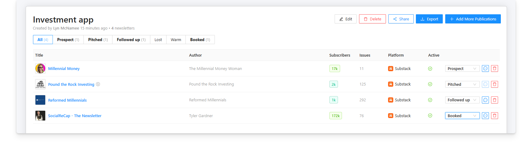 Open your list and use it as a pipeline manager to keep track of your pitches.