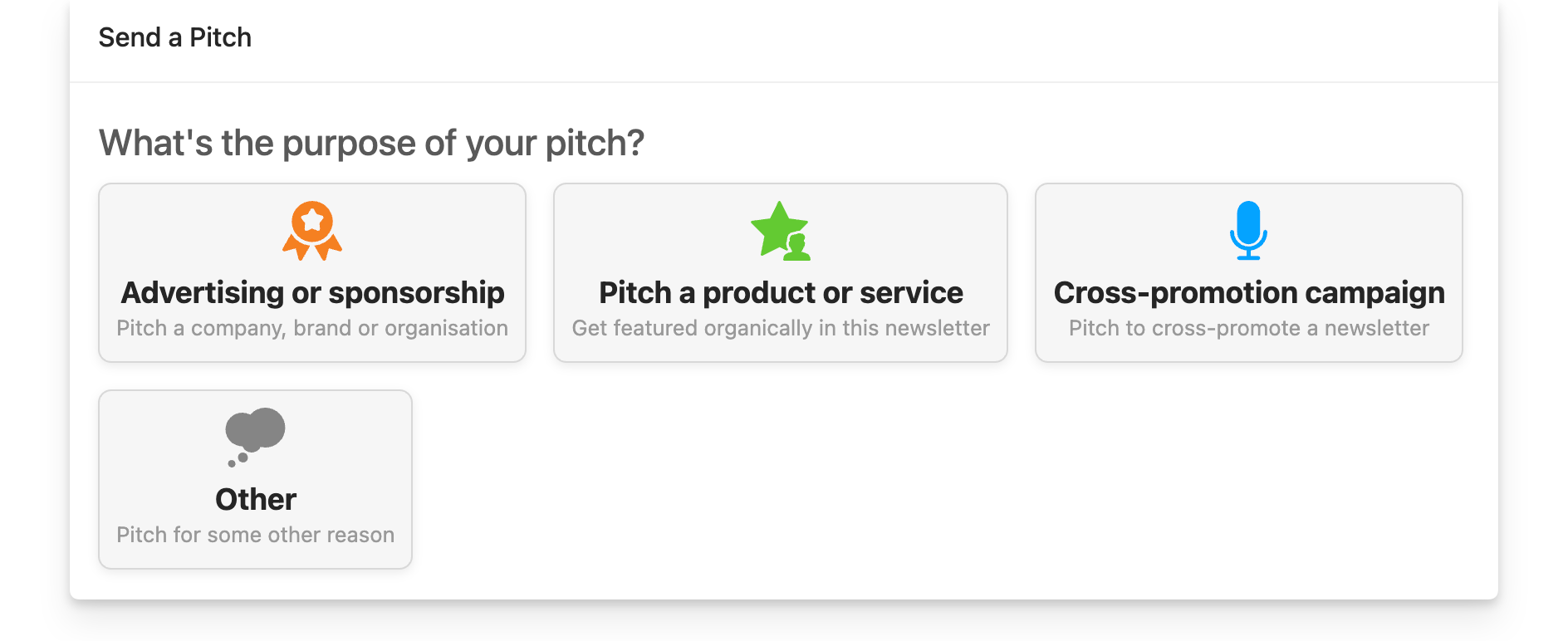 - Surfaces newsletters whose readers have the right needs or goals. People don’t always identify with a neat audience label, but they still have needs, problems and goals that relate to your product.