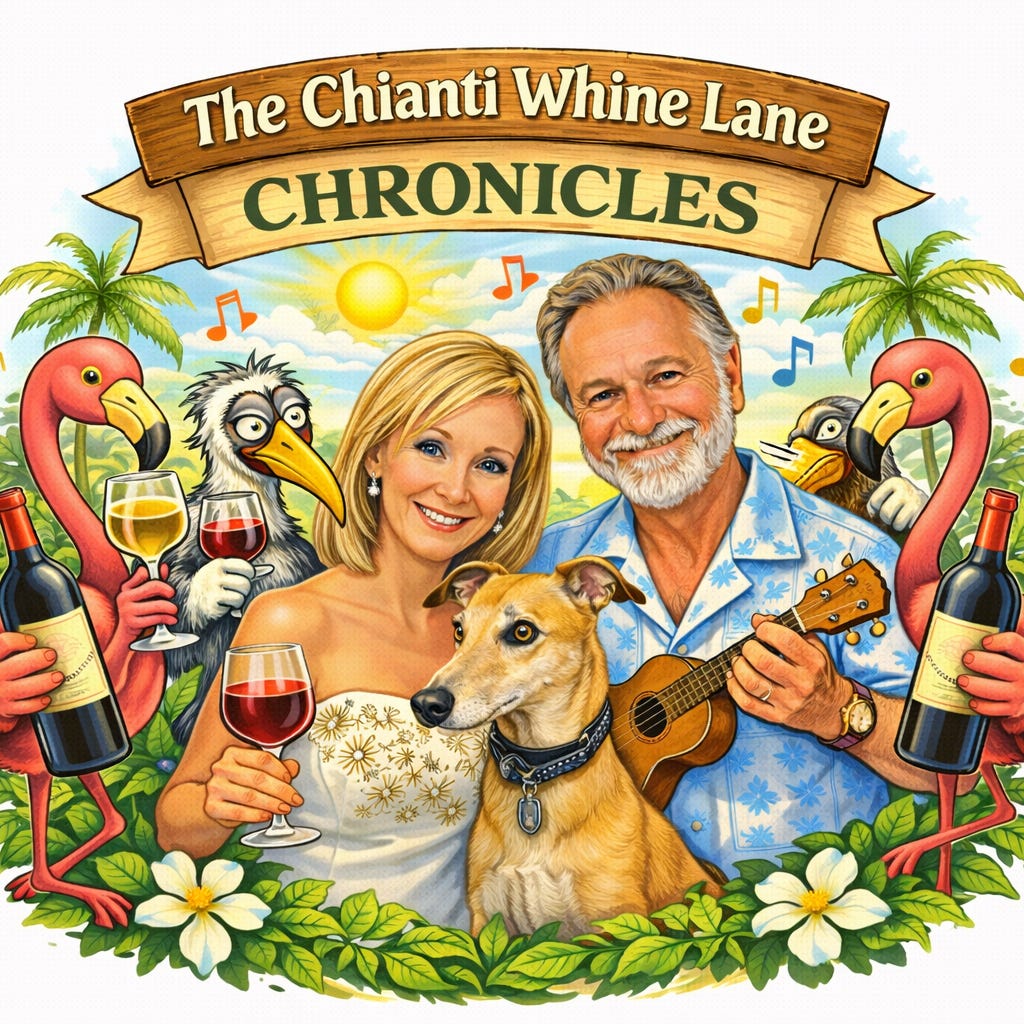 The Chianti Whine Lane Chronicles is a satirical serialized fiction set inside a Florida HOA where rules multiply, language replaces truth, and birds appear to have enforcement authority.